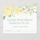 Esta linda, amarela, cor d'água floral, adivinha quantos beijos e abraços o cartão de jogo do Chá de panela é perfeito para o seu chá de casamento! Basta encher uma tigela, cesta ou jarro com beijos e abraços de Hershey e ter esses lençóis por perto. Enquanto os hóspedes se misturam durante a festa, façam-nos adivinhar quantos existem e colocar lá adivinhação e nome numa folha. A pessoa com o palpite mais próximo ganha os beijos e abraços.