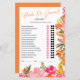 Torne o seu chá de panela mais divertido com este cartão de jogo "Noiva ou Cavalheiro Adivinhado Quem?" com um vibrante design floral de aquarela. Com uma mistura de perguntas lúdicas e lúcidas, como "Quem fez o primeiro movimento?" e "Quem é o melhor dançarino?", os convidados podem rodar suas respostas e ver quem sabe melhor o casal. Os sotaques florais cor-de-rosa, laranja e amarelo pintados à mão adicionam um toque brilhante e vivo, perfeito para chás de formato boho ou floral. Um divisor de gelo excelente e guarde a noiva para ser!