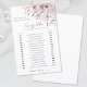 O Amor Está No Jogo De Chá de panela "Adivinha Quem". Adicione uma atividade divertida e caprichosa ao seu chá de panela com este jogo encantador, perfeito para uma celebração temática de flor silvestre "Love Is In Bloom". Os convidados tentarão adivinhar se cada pergunta se aplica à noiva ou ao noivo, fazendo circular um ícone de anel para a noiva ou um ícone de gravata de boliche para o noivo, e o fazer é uma forma divertida de ver quem conhece melhor o casal. A design apresenta flores silvestres de aquarela delicadas em pincéis de pincel suave, rosa poeirento, lilac, lavanda, violeta e verduras frescas para um olhar sonhento e romântico. O texto do jogo é exibido em uma mistura de um script elegante manuscrito e fontes serif limpas, fazer-o na moda e fácil de ler. Totalmente personalizável, você pode editar as perguntas, ícones, fontes e cores para corresponder perfeitamente ao seu tema de chá de panela. Esta atividade adiciona um toque doce e brincalhão para celebrar a noiva e o noivo. Isto também é chamado por vezes de "jogo do calçado" porque, por vezes, a noiva e o noivo respondem a estas questões segurando um calçado.