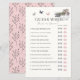 Este elegante cartão de jogo "adivinhem quem noiva ou noiva?" apresenta um fundo creme com pilhas de livros, borboletas, buquê de flores, bule e chá em aquarela. O verso apresenta um fundo cor-de-rosa com padrão floral. Personalize-o para as suas necessidades. Você pode encontrar produtos correspondentes na minha loja.