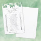 Sorte na Rua do Amor. Jogo de Chá de panela do Dia de Patrick "Adivinha Quem". Adicione diversão festiva ao chá de panela com esta Rua. Os convidados tentarão adivinhar se cada pergunta se aplica mais à noiva ou ao noivo, fazendo circular um ícone de anel à esquerda para a noiva ou uma gravata de bolso à direita para o noivo. A lista de perguntas segue o centro, fazer fácil de acompanhar e jogar. O design apresenta lascas de aquarela em tons verdes macios e variados em cima para um toque festivo, em conjunto com uma mistura de escrita manual e fontes clássicas de serifa para um layout charmoso. Todo o texto, fontes e cores podem ser personalizados para ajustado do tema do seu partido. Este jogo alegre é a maneira perfeita de brindar a "Lucky in Love" com a noiva e o noivo. Isto também é chamado por vezes de "jogo do calçado" porque, por vezes, a noiva e o noivo respondem a estas questões segurando um calçado.