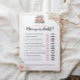 Torne o seu chá de fraldas divertido e interativo com este adivinho quem? Mamãe ou jogo de Pai! Os hóspedes adorarão adivinhar qual é o progenitor mais susceptível a fazer certas coisas que irá lidar com o dever de fralda, quem cantará as melhores naves, ou quem mais desejará doces durante a gravidez! Este jogo divertido traz risos e alegria enquanto celebra os futuros pais.