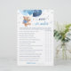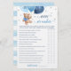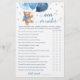 Adquira este cartão editável e desfrute de um Jogo Adivinhado ou Sob Jogo de alta qualidade para o seu evento! Este é um modelo de cartão, Você pode personalizar o cartão, mudar o texto como quiser! Atividades de chá de fraldas! Jogo de Adivinhação Azul e Prateada.