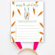 Convites para chuveiros de bebês neutros em termos de gênero. Apresentando o ditado "UM PEQUENO BUNNY ESTÁ A CAMINHO!", uma ilustração de um coelho aquoso (coelho) com cenoura em patas, e muitas cenouras cor de laranja. Itens correspondentes disponíveis.