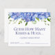 Este lindo e azul hydrangeas florais de aquarela adivinha quantos Kisses e Hugs é perfeito para o seu chá de casamento! Basta encher uma tigela, cesta ou jarro com beijos e abraços de Hershey e ter esses lençóis por perto. Enquanto os hóspedes se misturam durante a festa, façam-nos adivinhar quantos existem e colocar lá adivinhação e nome numa folha. A pessoa com o palpite mais próximo ganha os beijos e abraços.