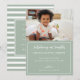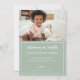 Celebre a chegada do seu filho ou filha com este doce cartão de adoção. Apresentando um fundo verde sábio com fontes elegantes de serifa e script, e um design de faixa branca e sábio nas costas com as palavras: "Não carne da minha carne, ou ossos dos meus ossos, mas através do plano de Deus, miraculosamente o nosso." Todo texto é personalizável.