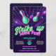 Prepare-se para jogar boliche e celebrar com este vibrante concurso. O design apresenta pinos boliches brilhantes e listras coloridas, perfeito para um evento de alta energia e excitante. Com cores ousadas e neonatais colocadas contra um pano de fundo cósmico, este convite é para que os convidados fiquem animados para uma festa de boliche cheia de diversão. Quer seja para um aniversário ou outra ocasião especial, este design brincalhão captura o espírito da competição e da diversão. Avise aos seus hóspedes que será uma noite de greves e comemoração com este convite surpreendente.