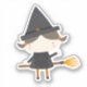 Adorável bruxa bonitinha num adesivo de vassoura
