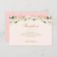 Um cartão de informações de recepção de casamento com um design floral de cor-de-água rosado e um texto personalizado.