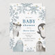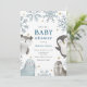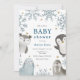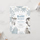 Convite para chá de fraldas bonito com aquarelas, animais de inverno e flocos de neve. Personalize com suas informações ou clique em "Clique para personalizar mais" para editar estilos de fonte, tamanho e cores.
