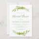 Simples e elegante modelo de convite de casamento verde de folhagem. Um design verde e branco exclusivo com texto personalizado e as cores e outros recursos podem ser personalizados.
