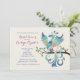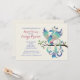Um pavão fantasioso, com matizes de penas azuis, é empoleirado num ramo de árvore. Este convite encantador é adequado para muitas celebrações, incluindo aniversários, chás de panela, noivados e muito mais.