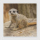 Um bebê meerkat bonito se senta num toco de árvore, exuando inocência com um olhar curioso. Pele suave e características carinosas contribuem para o encanto desta cena encantadora.