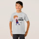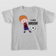 Um garoto loiro giro chutando uma bola de futebol, vestindo uma Jersey vermelha e azul com o próprio nome de seu filho. (Certifique-se de inserir o nome do seu filho no modelo) com o texto "Eu amo futebol". Este texto também pode ser alterado e personalizado, se desejar. Um presente especial e pessoal para seu pequeno fã de futebol ou estrela de futebol.