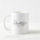 Na moda e caneca única com tipografia negra moderna. Personalize esta caneta de aspas adicionando um texto curto ou o seu nome. Isso será perfeito como presente personalizado. "Aventura está lá fora"