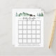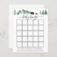 Cartão de bingo chá de fraldas com aquarela evergreen tree, montanhas e mama com bebê urso. Uma maneira divertida de interagir com os convidados do chá enquanto a mamãe a ser abre seus presentes.