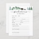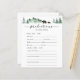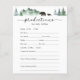 Cartão de previsão de chás de fraldas com aquarela evergreen tree, montanhas e mama com bebê urso. Uma maneira divertida de interagir com convidados de chá.