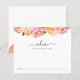 A placa de atividade do chá de fraldas apresenta flores rosa-d'água e fruta de citros. O cartão de aconselhamento incita os hóspedes a partilharem conselhos para que os pais se preparem para o bebê.