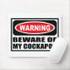 Advertir BEWARE de MEU COCKAPOO Mousepad que você pode personalizar em www.WarningSignShirts.com e caracteriza um sinal de aviso vermelho e preto e BEWARE de MEU COCKAPOO em letras pretas corajosas para advertir o mundo. Você pode igualmente personalizar seu próprio sinal de aviso Mousepad com o texto que você quer.
