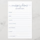 Estes escritos simples, modernos, mínimos e empoeirados, de cor azul, manuscritos pelos Consejos y Deseos são perfeitos para o seu chá de panela, janto de ensaio ou convidados de casamento preencherem para o casal feliz. As pessoas vão adorar ter as ordens - tornam tão fácil deixar palavras amáveis de conselhos e de bons desejos. Eles ficarão tesos por anos.