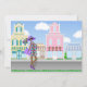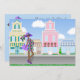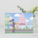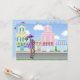 A mãe grávida africana americana está de vestido roxo. Os antecedentes roxos com lojas da cidade fazem este convite para chás de fraldas adequado para raparigas ou rapazes.