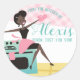 "Da minha cozinha" ou "da cozinha da", etiquetas de presentes super bonitas com etiquetas adesivas com estilo retrógrado, uma dona de casa africana americana vestindo um avental, um pequeno vestido preto e uma luva de forno, sentada no fogão, feliz por ser cozinhar ou assada. Etiquetas incríveis para suas comidas caseiras, doces e doces. Mude a cor de fundo de rosa para a sua favorita, também muda a sua luva de forno, avental e cor de toalha!