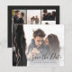 Esta elegante horizontal para salvar a placa de data apresenta uma borda agata preta, cortada com rosa dourada falso. Substitua facilmente as imagens de exemplo por suas próprias fotos da futura noiva e noiva. O texto personalizável combina o script preto de escrita manual e a fonte em suporte na sua foto na frente; um filtro de gradiente branco ajuda a fazer o pop de texto. O verso fornece espaços para cinco fotos adicionais, juntamente com espaço para o URL do seu site de casamento ou outra mensagem breve em texto cor-de-rosa rosa sobre fundo preto.