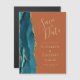 Esta elegante placa de imã salve a data moderna apresenta uma coloração aquosa azul-lacrimejante, limitada com brilho dourado falso. Personalize facilmente o texto dourado em um fundo laranja ou crosta queimado.