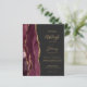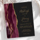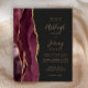 A borda esquerda deste elegante convite de casamento moderno mostra uma borda de água borrifada, cortada com falsa brilho dourado. O texto personalizável combina manuscritos dourados, copperplate e fontes itálicas em um fundo de cinza de carvão escuro. O lado inverso apresenta uma burgundy e uma design de agata dourada. NOTA: os envelopes não são incluídos automaticamente nestes convites de orçamento, portanto lembre-se de escolher a opção "envelopes brancos"!