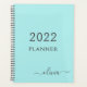 Agenda 2022 Azul Água Teal Nome Monograma Roscas Script