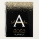 2023 Caderno Espiral de Nome e Inicial Monograma com Brilho Dourado e Preto. Este é o presente perfeito para aniversário de 16 anos, casamento, chá de noiva, aniversário de casamento, chá de bebê ou despedida de solteira para alguém que ama luxo glamoroso e estilos chiques.