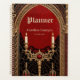 A escura elegância do estilo gótico. O fundo é um vermelho profundo e rico que oferece um contraste dramático aos sotaques dourados brilhantes. O design do estilo gótico combina elegância e misticismo.