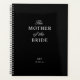 Personalizada a Mãe do Planeador da Noiva. Script clássico e texto de bloco com iniciais de noiva e noções de noivo e campo de texto de data de casamento. Texto branco sobre fundo preto.
