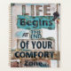 A Vida Começa No Fim Do Notebook E Diário Da Zona De Conforto. Eu adoro criar arte mestiça. É uma forma de relaxamento para mim. As peças geralmente são uma combinação de uma citação inspiradora ou pensamento combinado a muita experimentação com diferentes meios. Arte do Emporium de Jenn.