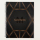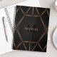Um legal planejador de abstrato, estilo luxuoso, com design geométrico preto e dourado. Personalize com seu monograma e nome.