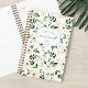 O planejador personalizado do chip apresenta um padrão de fundo de rosas brancos de aquarela e verde-claro. Personalize com três linhas de texto personalizado.