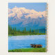 Wonder Lake, alce macho se alimenta de vegetação, montanhas do Alasca ao fundo, Parque Nacional Denali, Alasca