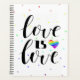 Este texto trabalho de arte apresenta a frase "Amor é Amor" com corações circundantes.