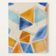 Capa com arte feita em aquarela com formas geométricas nas cores base, laranja e azul, pintadas de maneira intuitiva e coordenada pra deixar espaços harmônicos entre os formatos, tornando a obra única e agradável aos olhos
