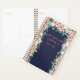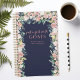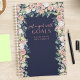 Um bom planejador de citações motivacionais para mulheres. Escova com letra de escrita que diz "Apenas uma garota com objetivos". Cercado por florais de aquarelas sobre fundo azul-marinho. Personalize este design personalizado com seu próprio nome, texto e ano.