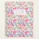 Notebook planejado personalizado com padrão floral púrpura de cor d'água com nome personalizado.