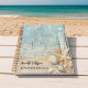 Um cenário de praia rústico. Madeira derivada, areia, concha e estrelas. Personalize e adicione seu nome e um texto.