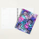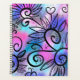 Um passarinho engraçado, elementos florais adoráveis, e um pequeno coração num fundo rosa, roxo e turquesa.