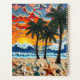 Beach art personalized notebook. An impasto oil painting style ai illustration of a beach full of palm trees, sea glass, sea shells and ocean waves at sunset. A bright colorful mesh of colors make this coastal art vibrant and beautiful!