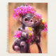 Macaco bebê bonito cercado por flores cor-de-rosa. Wombo Dream AI e colaboração de artistas.