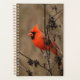 Pássaro vermelho incrível nos ramos de um morto ou árvore de queda com folhas marrons. O fundo faz o vermelho vivo das penas das aves se destacar e pop.