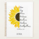 Faça uma declaração de sua fé com esta design única de um girassol amarelo vibrante e verso parcial dos Galatianos 5:22, "Mas a fruta do Espírito é amor, alegria, paz, paciência, bondade, bondade e fidelidade. Este planejador de calendário baseado em fé pode ser personalizado para o ano atual.