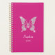 Personalize seu nome em um roteiro branco sobre fundo fuchsia com um design de borboleta de diamantes brancos clássicos. Clique em "Personalizar" para alterar cores e digitar estilos.