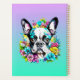 Cachorro "Cute Boston Terrier Dog" rodeado de flores rosa, amarelas e azuis. Ai art. presente bonito para os donos de Boston Terrier.