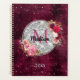 Agenda Brilho prateado chique falso Burgundy floral monog